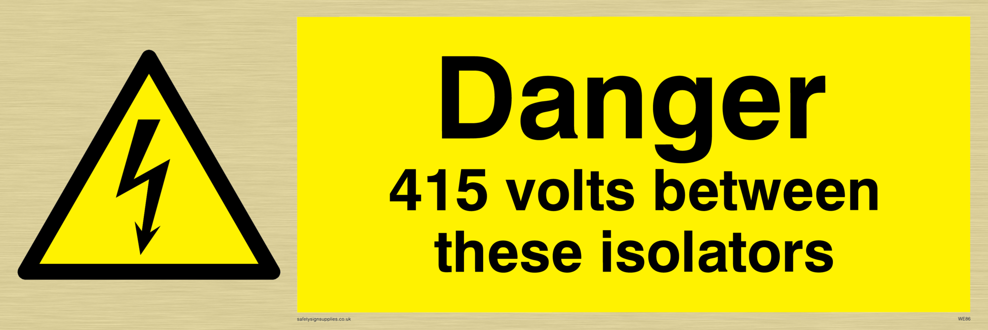 This sign contains an electrical warning symbol. Lightning flash in black on yellow warning triangle with black border.