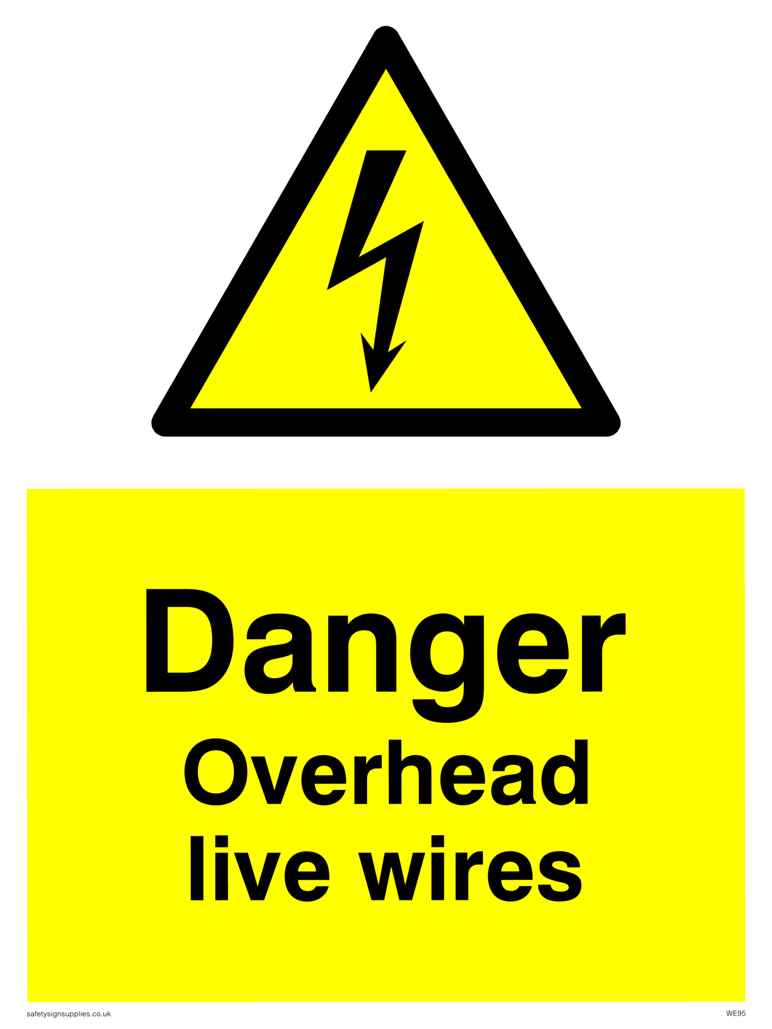 This sign contains an electrical warning symbol. Lightning flash in black on yellow warning triangle with black border.