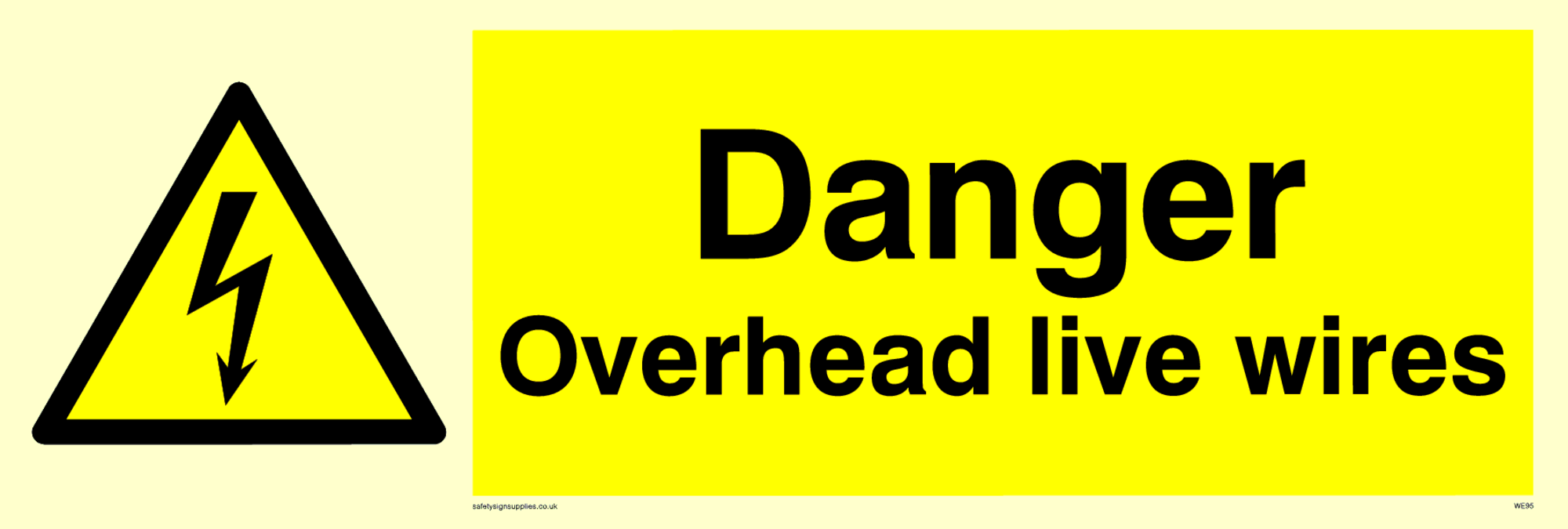 This sign contains an electrical warning symbol. Lightning flash in black on yellow warning triangle with black border.