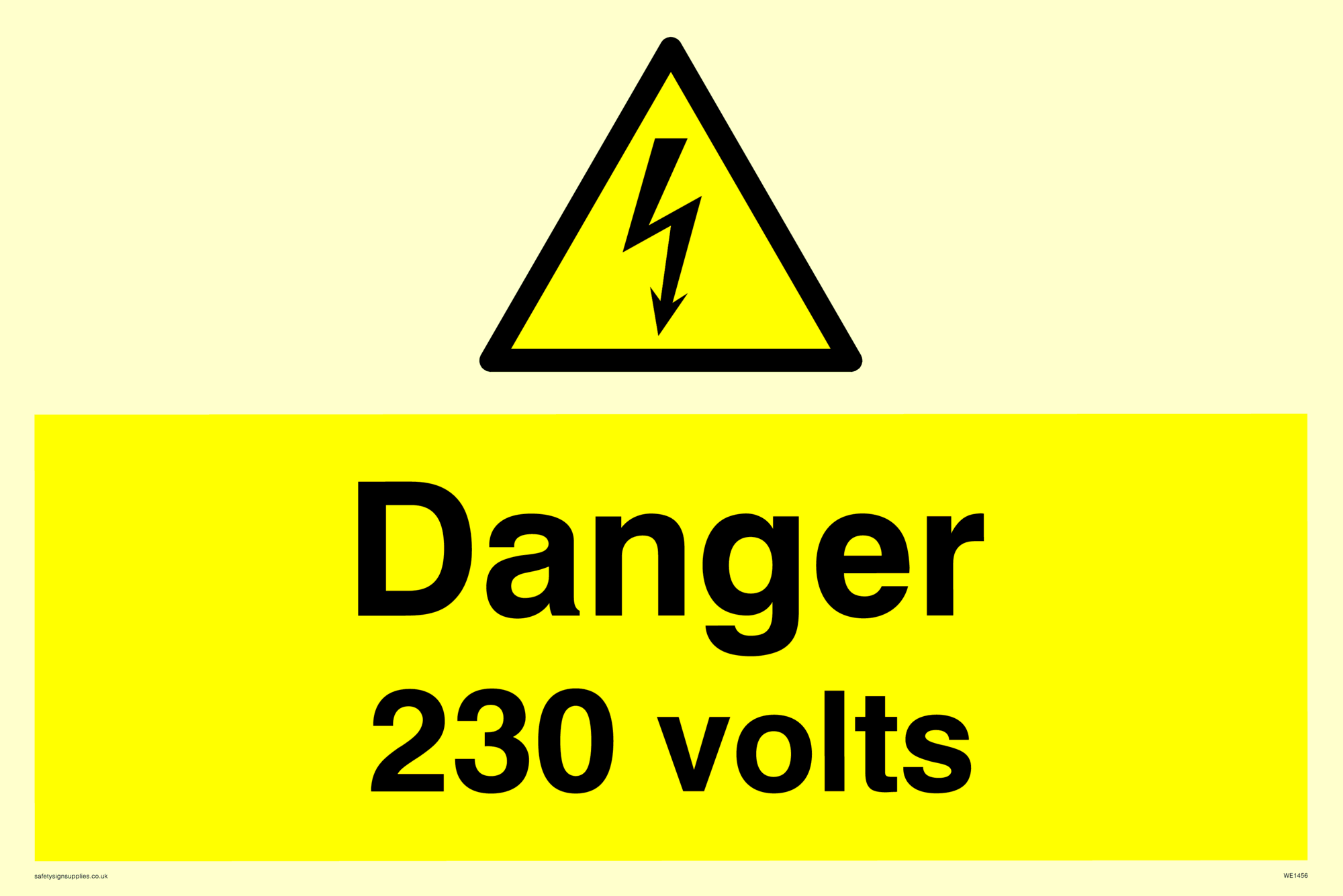 This sign contains an electrical warning symbol. Lightning flash in black on yellow warning triangle with black border.