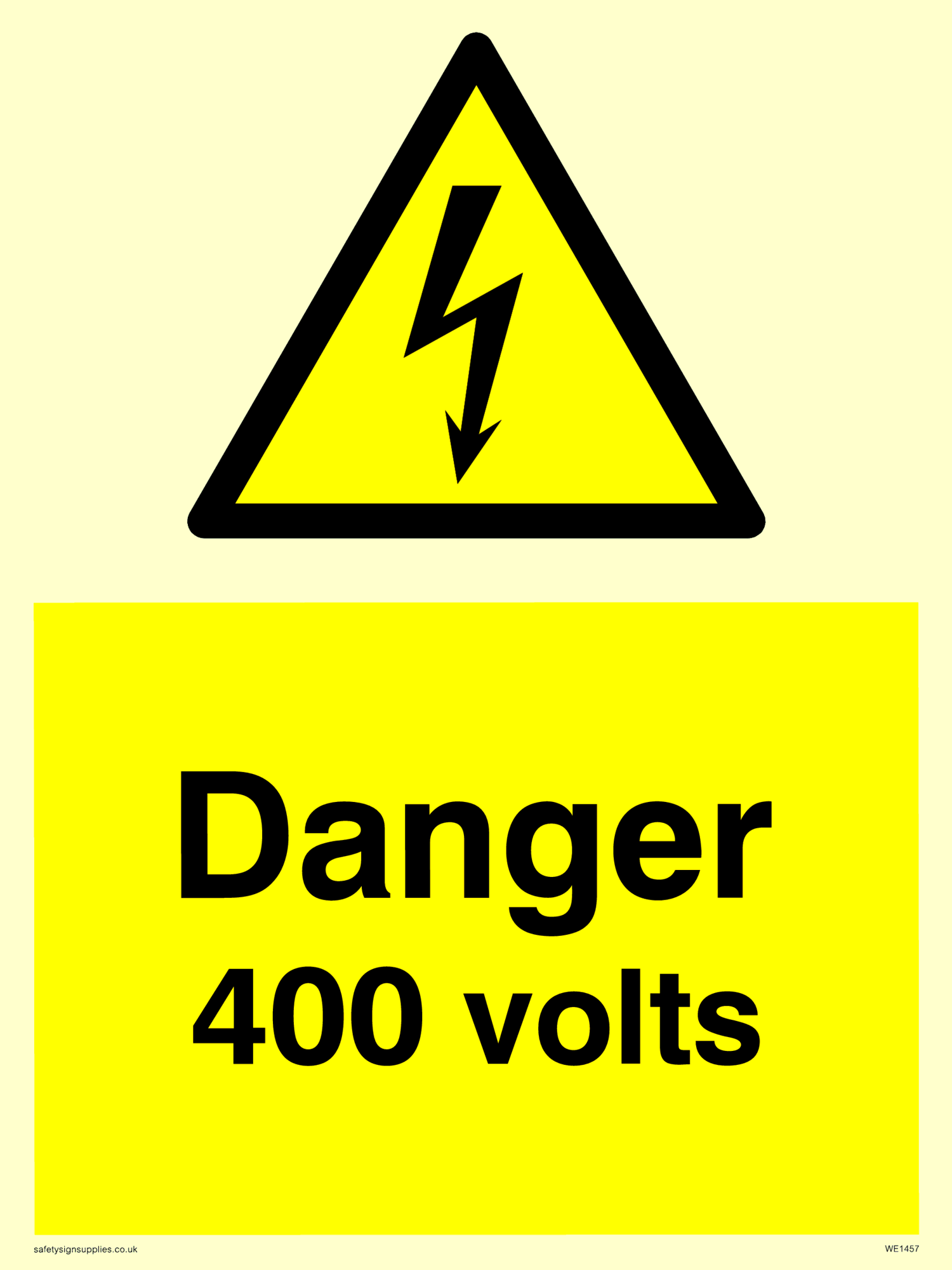 This sign contains an electrical warning symbol. Lightning flash in black on yellow warning triangle with black border.