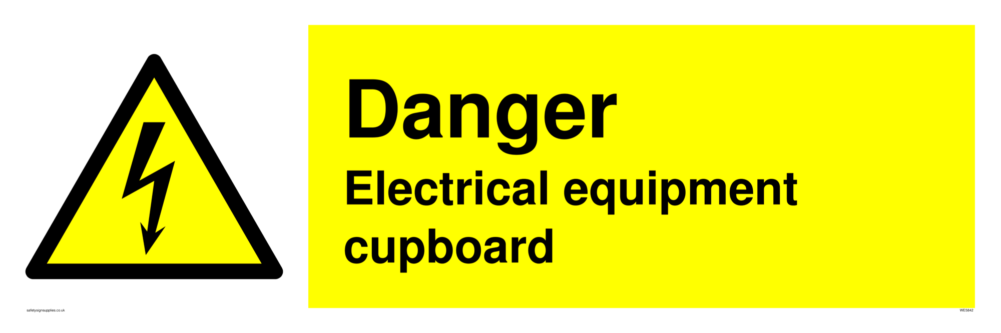 Sign Text: Danger Electrical equipment cupboard with electrical hazard warning symbol