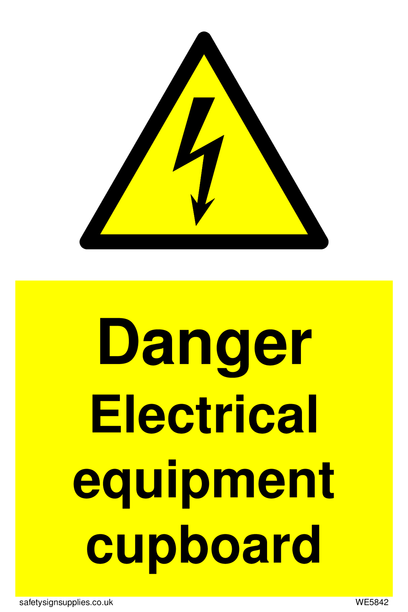 This sign contains an electrical warning symbol. Lightning flash in black on yellow warning triangle with black border.