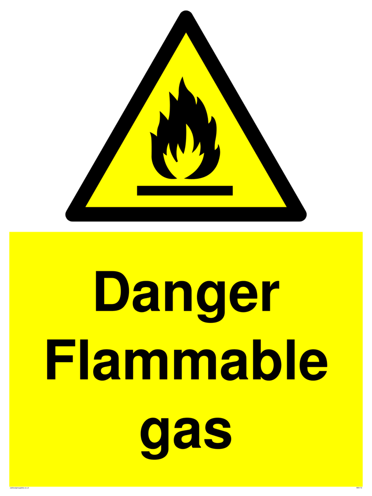 This sign contains an international standard flammable warning symbol. flat bar with flames in black on a yellow warning triangle with a black border.