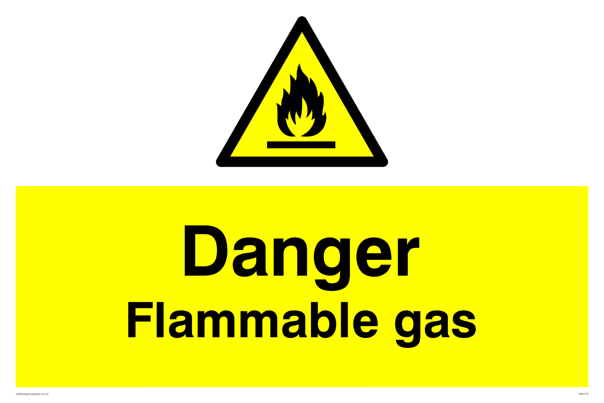 This sign contains an international standard flammable warning symbol. flat bar with flames in black on a yellow warning triangle with a black border. Suitable for hanging with a budget hanging kit.