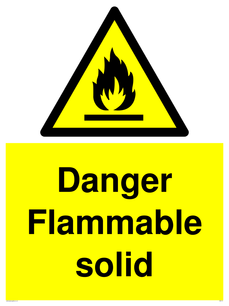 This sign contains an international standard flammable warning symbol. flat bar with flames in black on a yellow warning triangle with a black border.