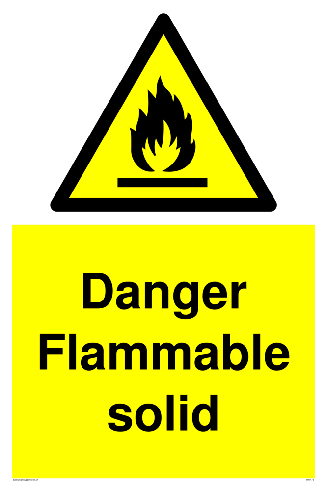This sign contains an international standard flammable warning symbol. flat bar with flames in black on a yellow warning triangle with a black border.