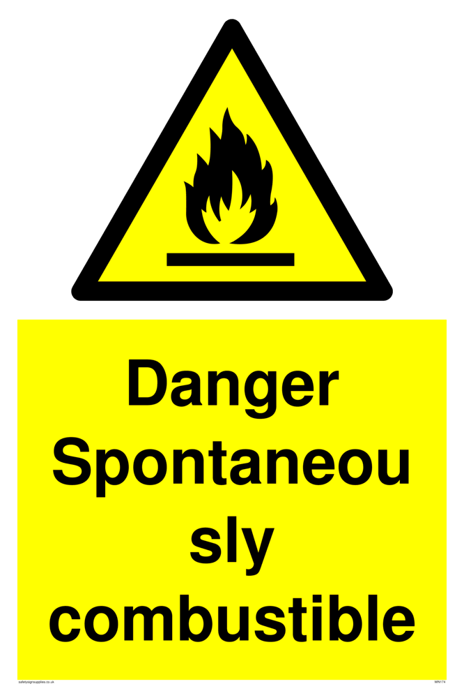 This sign contains an international standard flammable warning symbol. flat bar with flames in black on a yellow warning triangle with a black border.