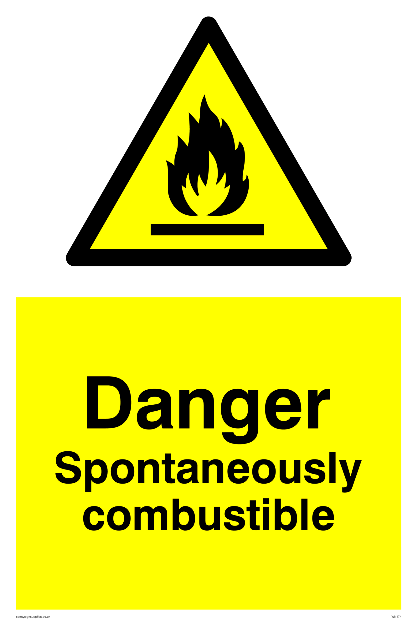 This sign contains an international standard flammable warning symbol. flat bar with flames in black on a yellow warning triangle with a black border.
