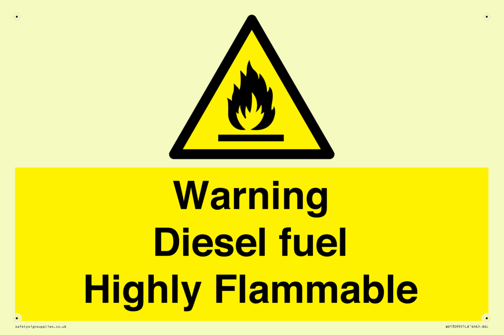Sign Text: Warning diesel fuel Highly Flammable