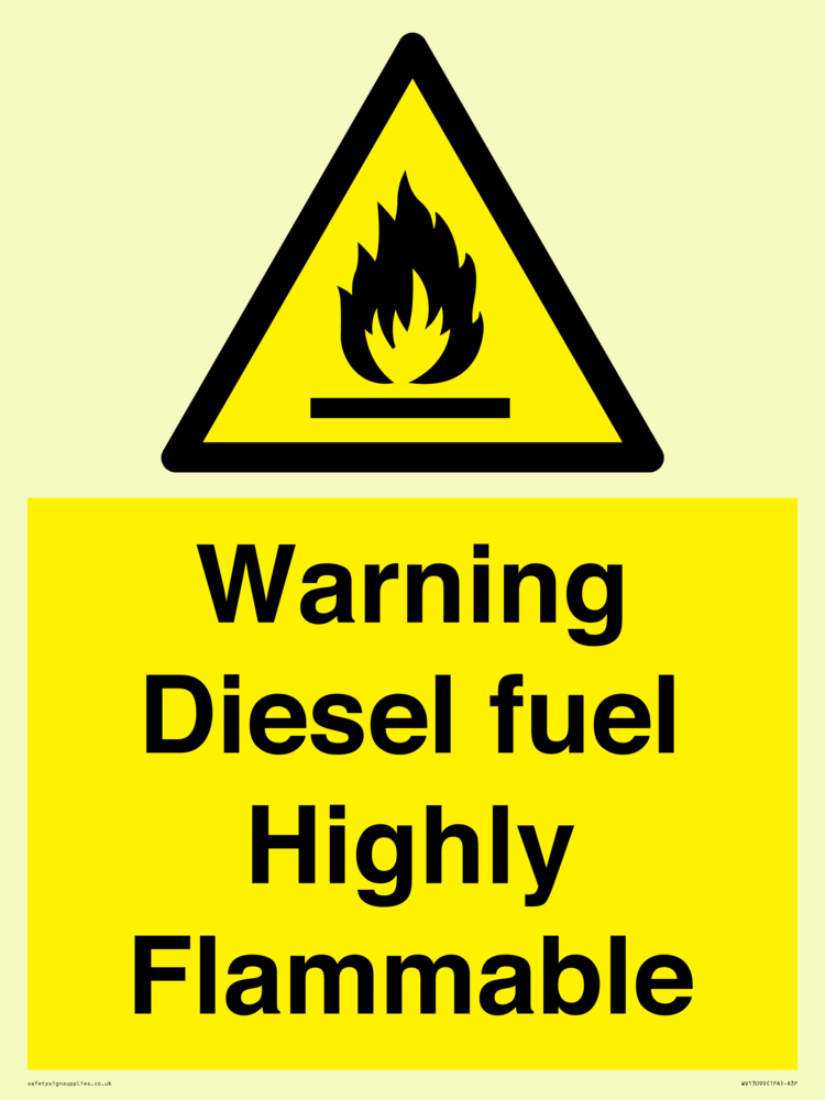 Sign Text: Warning diesel fuel Highly Flammable