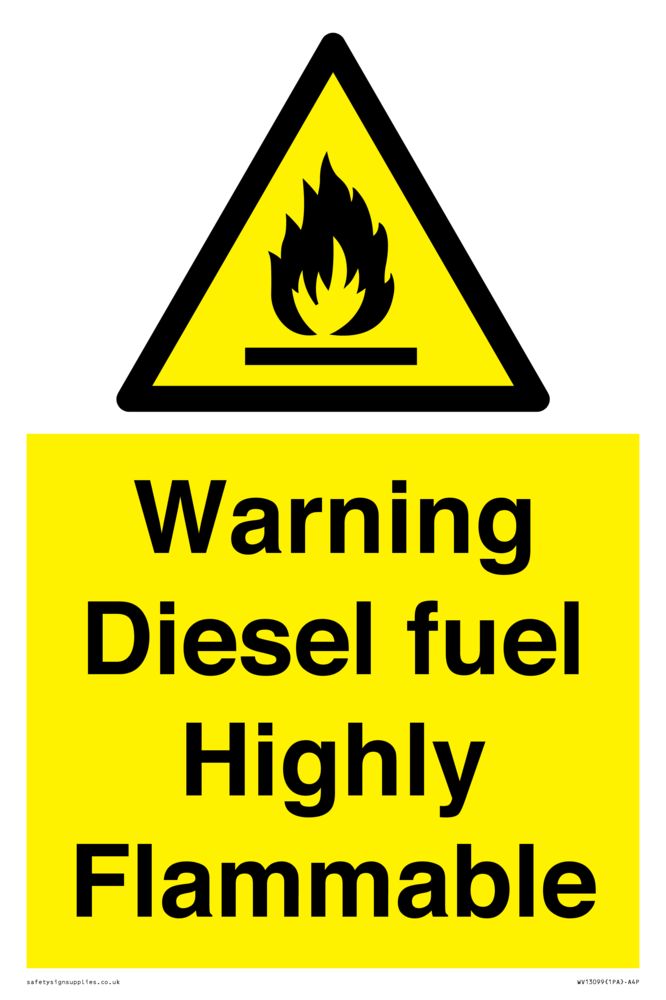 Sign Text: Warning diesel fuel Highly Flammable