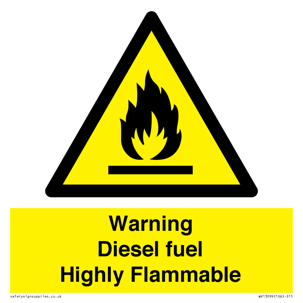 Sign Text: Warning diesel fuel Highly Flammable