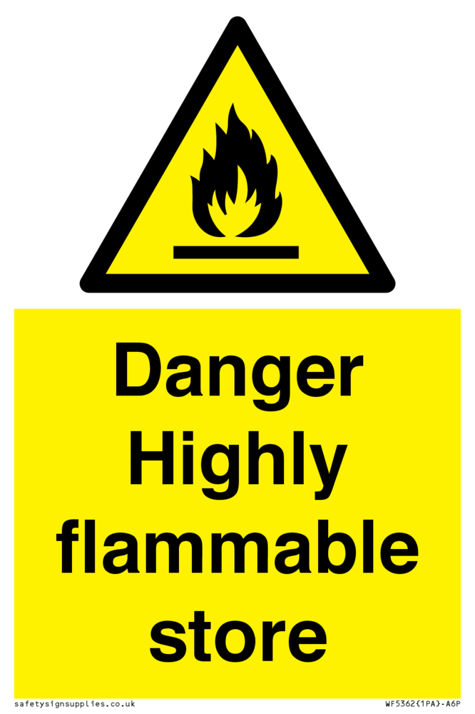 Sign Text: Danger Highly flammable store
