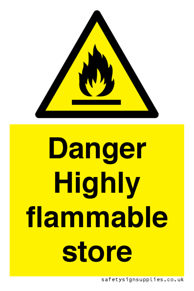 Sign Text: Danger Highly flammable store Product Type: Warning Safety Signs Dimensions: 50x75mm Material: Plastic Rigid 3mm Orientation: Portrait Text Colour: White More...