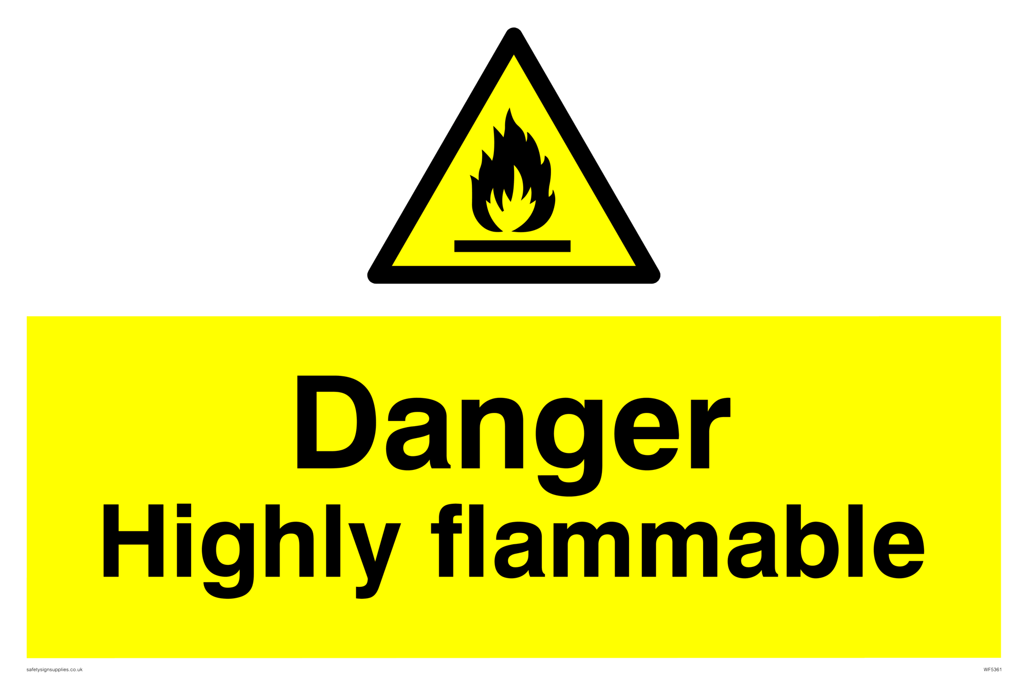 This sign contains an international standard flammable warning symbol. flat bar with flames in black on a yellow warning triangle with a black border.
