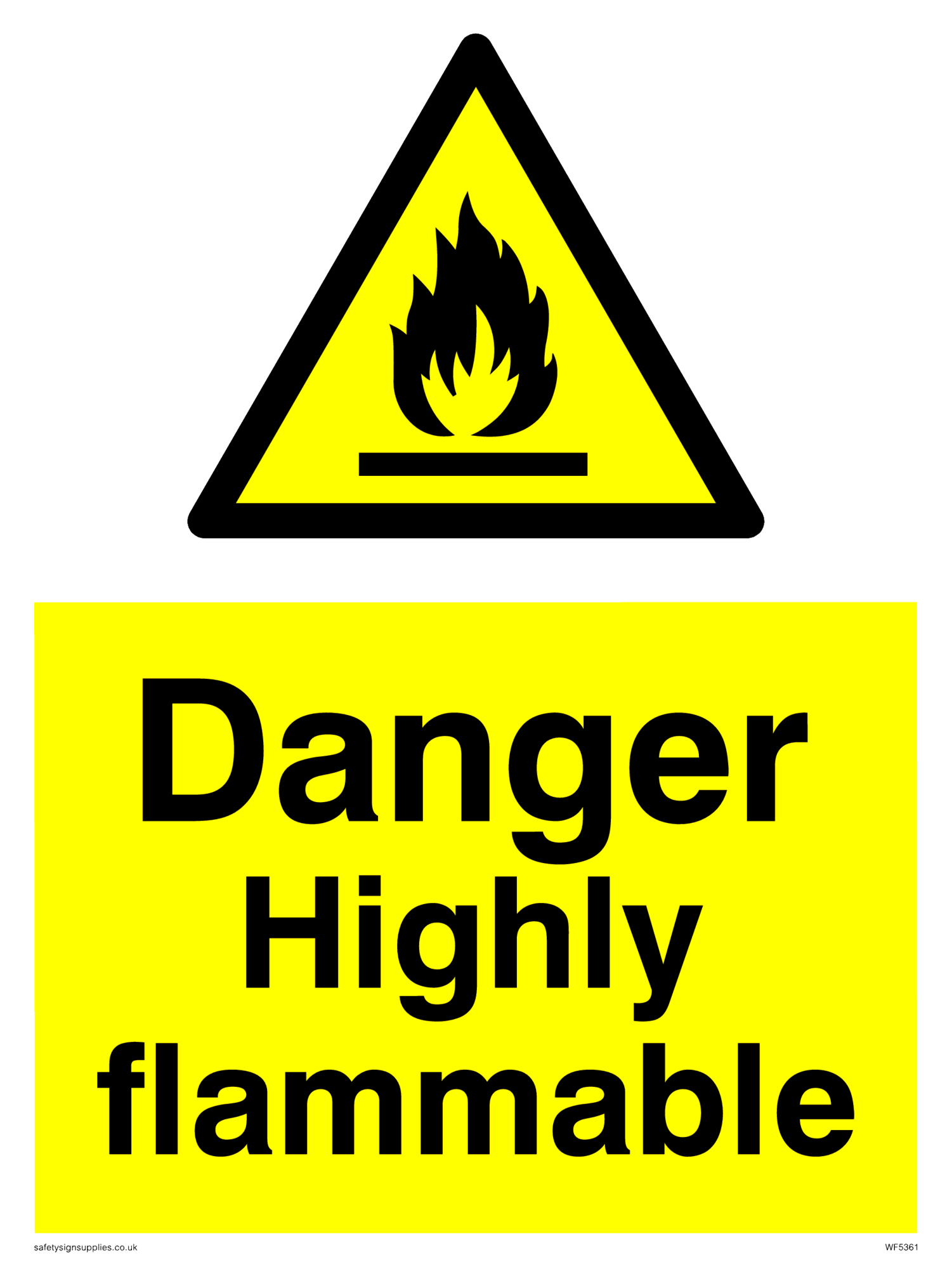 This sign contains an international standard flammable warning symbol. flat bar with flames in black on a yellow warning triangle with a black border. Suitable for fixing with screws.