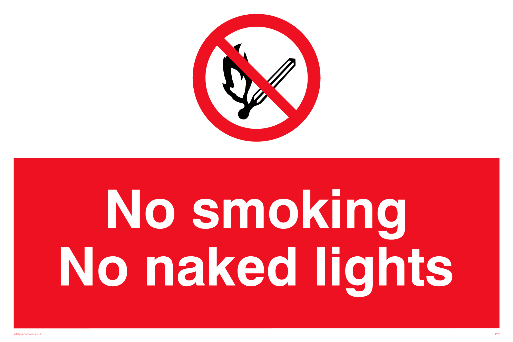 This sign contains a no naked lights symbol - match in black with red prohibition circle crossed through with diagonal line.