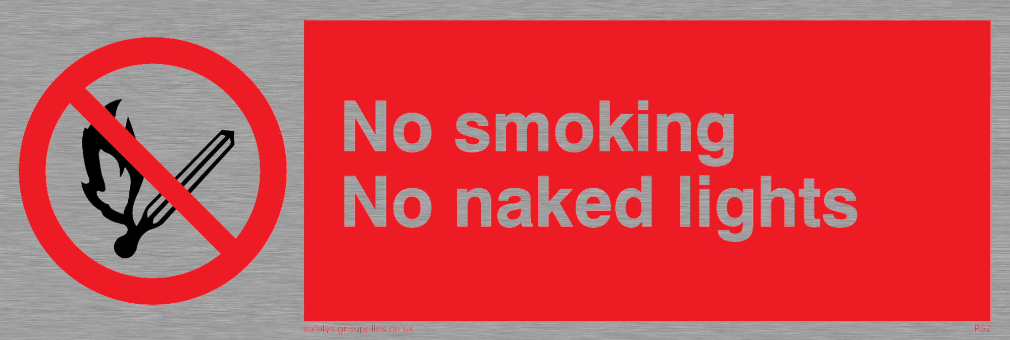This sign contains a no naked lights symbol - match in black with red prohibition circle crossed through with diagonal line.