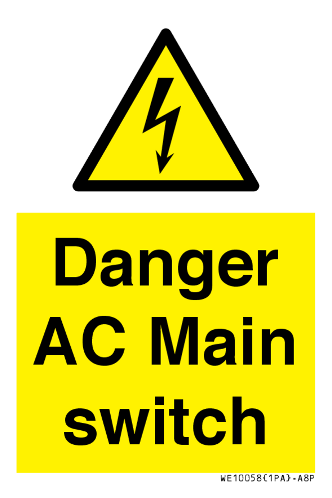 Sign Text: Danger AC Main switch
