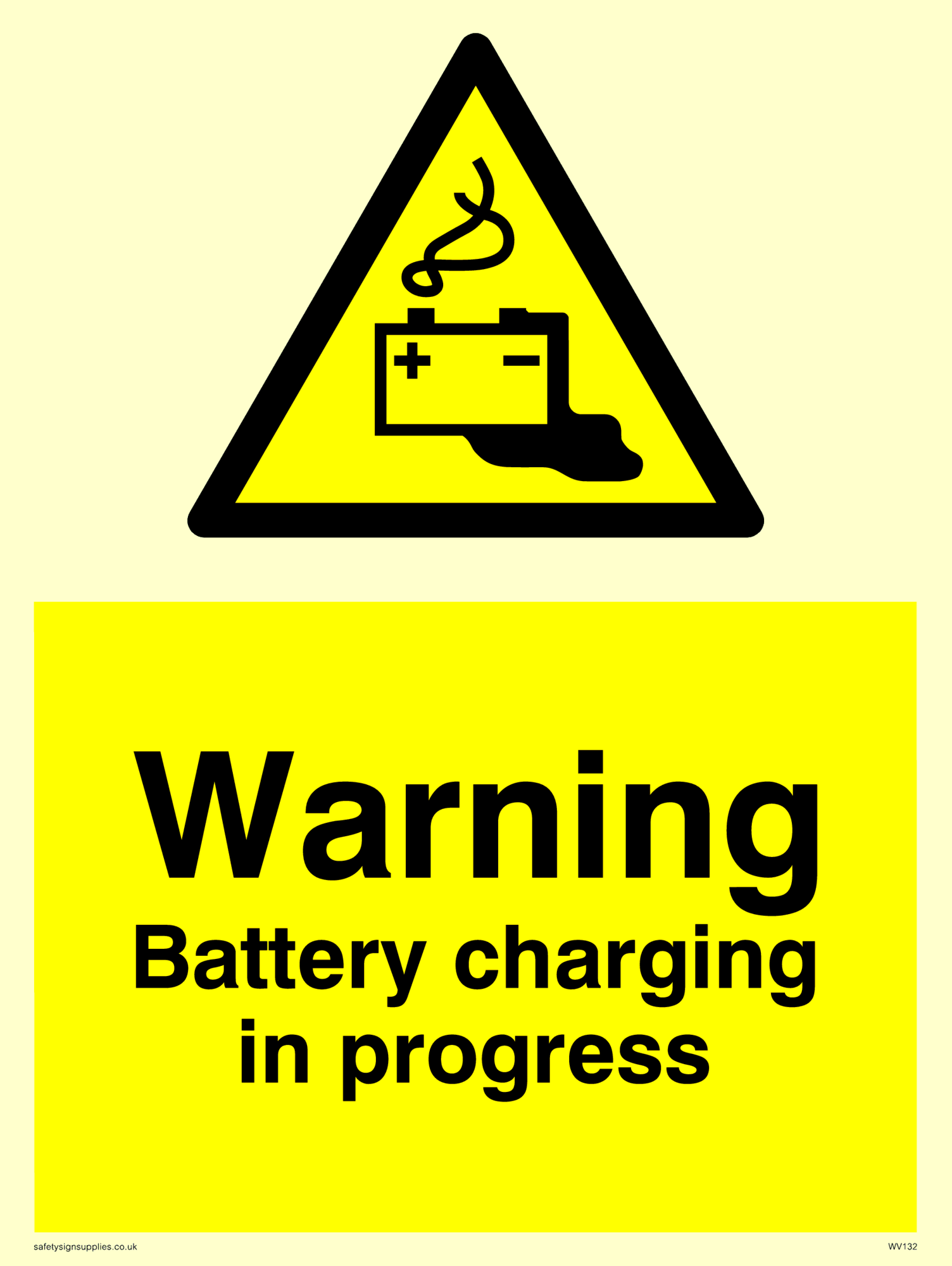 Sign Text: Warning Battery charging in progress