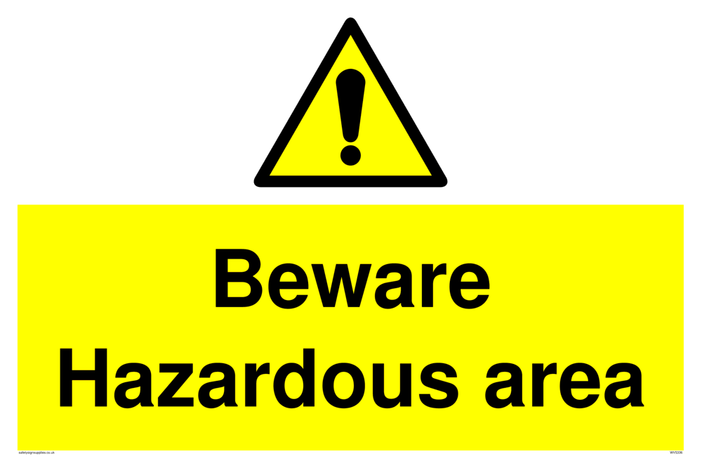 This sign contains a warning Exclamation Symbol - black exclamation mark on yellow triangle background. Suitable for hanging with a premium hanging kit.
