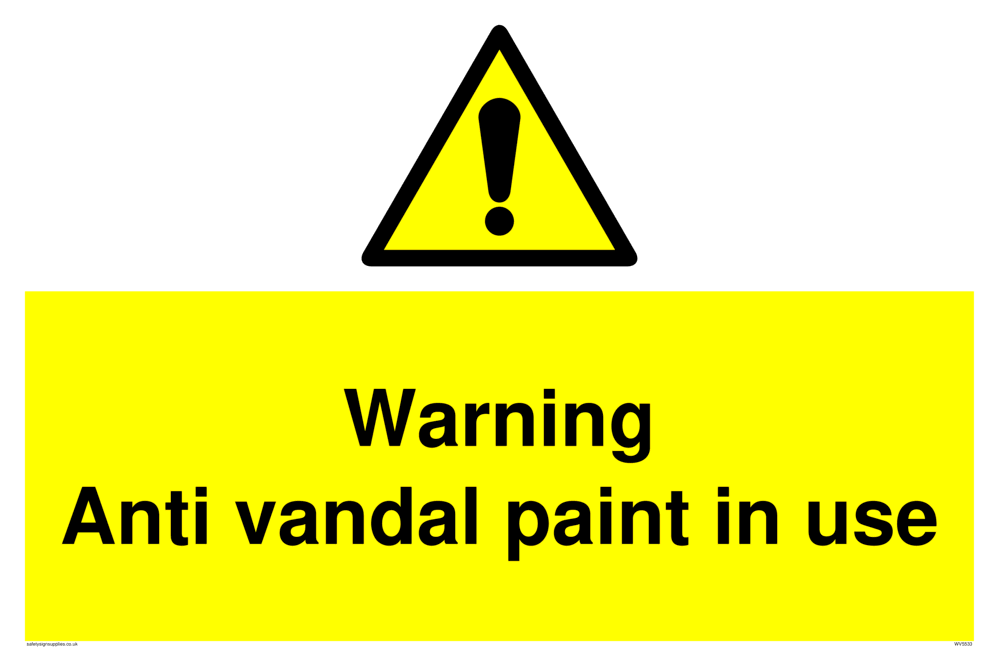 This sign contains a warning Exclamation Symbol - black exclamation mark on yellow triangle background. Suitable for hanging with a premium hanging kit.