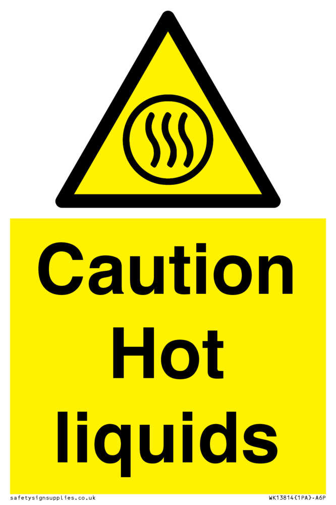 Sign Text: Caution Hot liquids