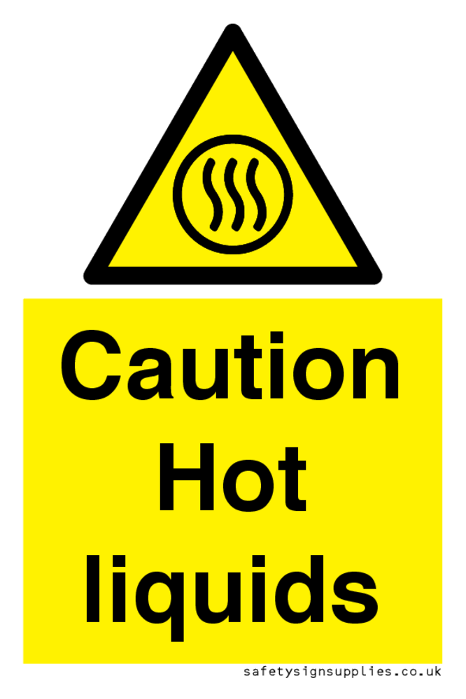 Sign Text: Caution Hot liquids