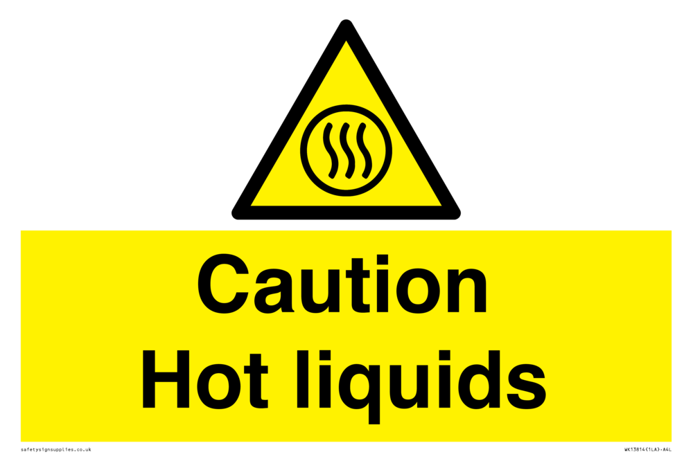 Sign Text: Caution Hot liquids