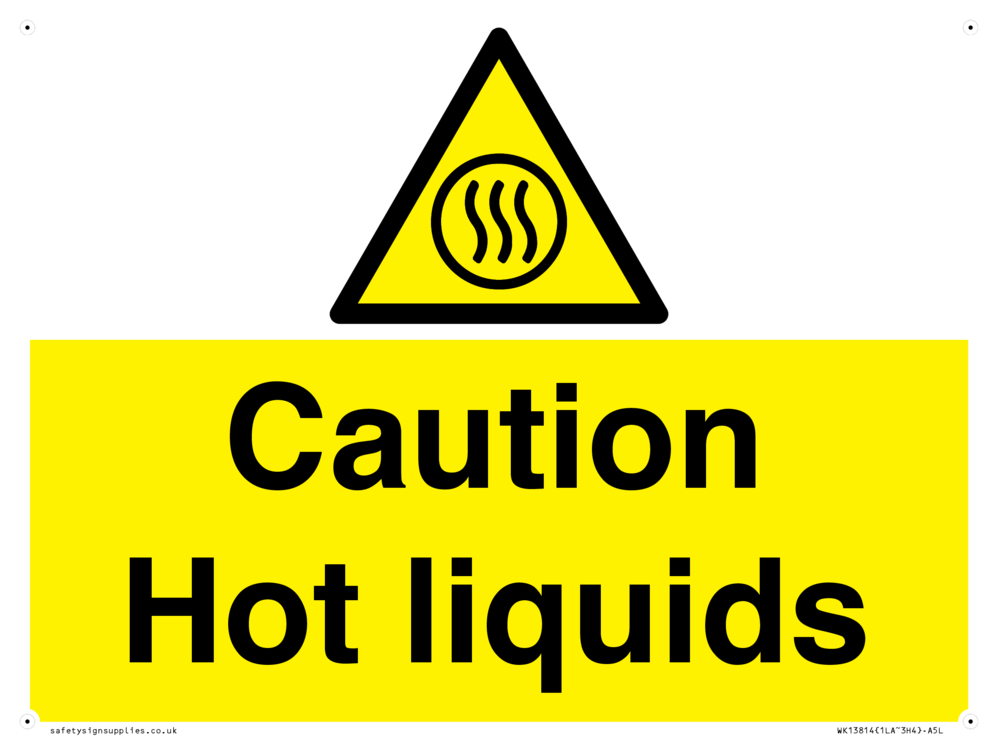 Sign Text: Caution Hot liquids