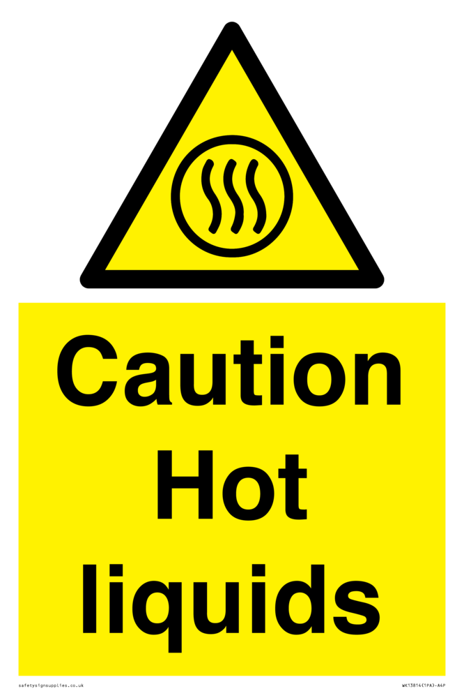 Sign Text: Caution Hot liquids