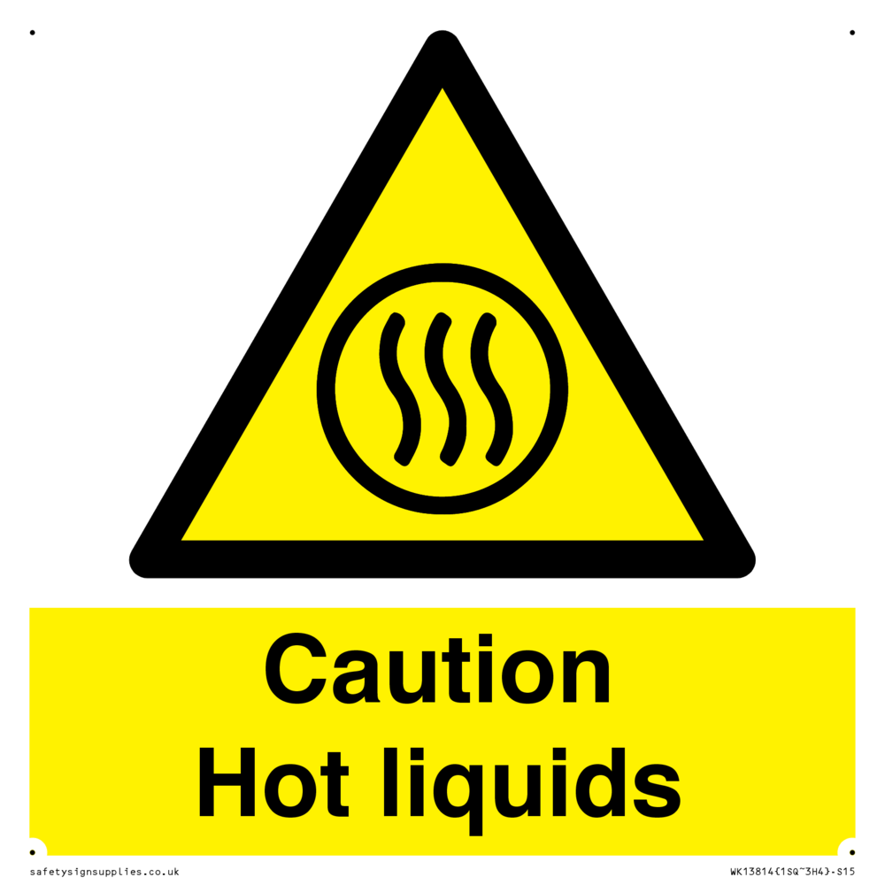 Sign Text: Caution Hot liquids