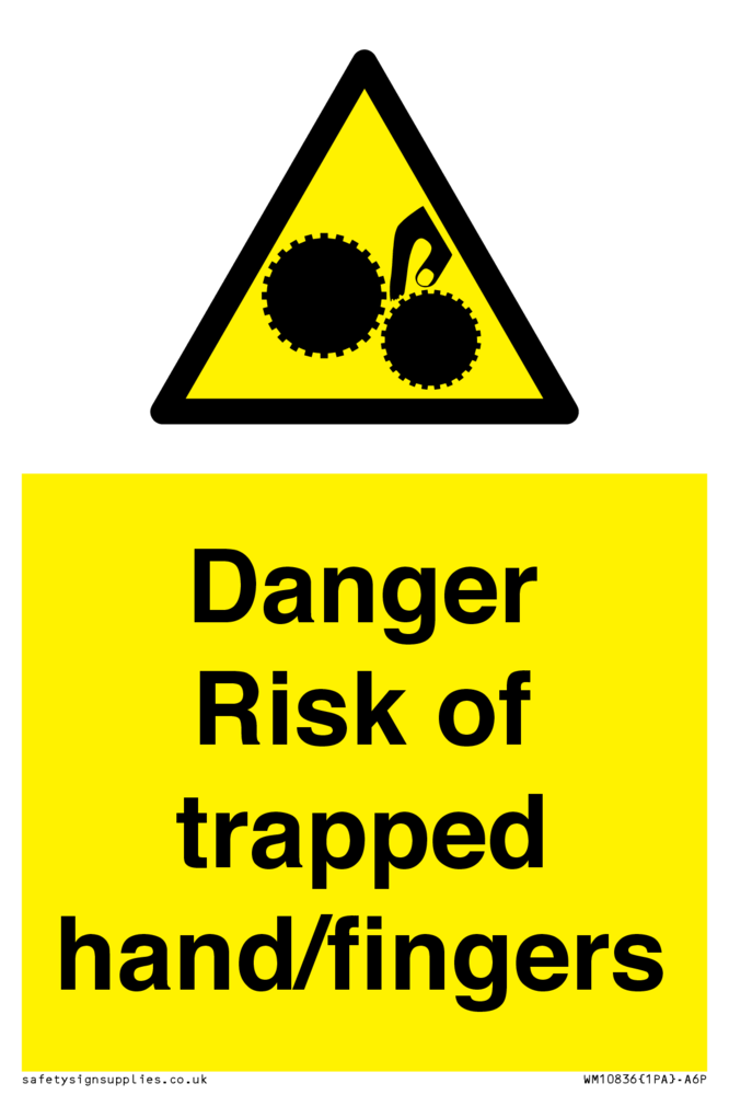 Sign Text: Danger Risk of trapped hand/fingers