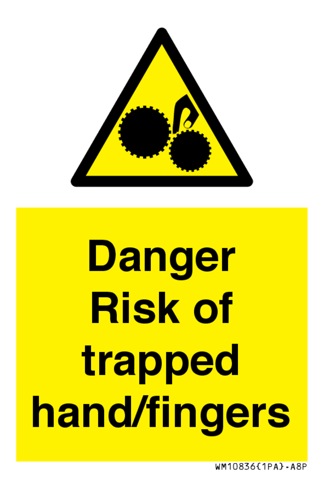 Sign Text: Danger Risk of trapped hand/fingers