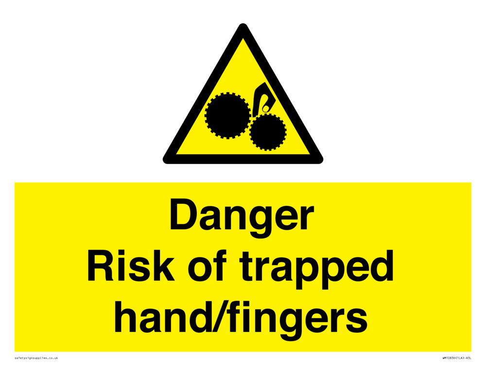Sign Text: Danger Risk of trapped hand/fingers
