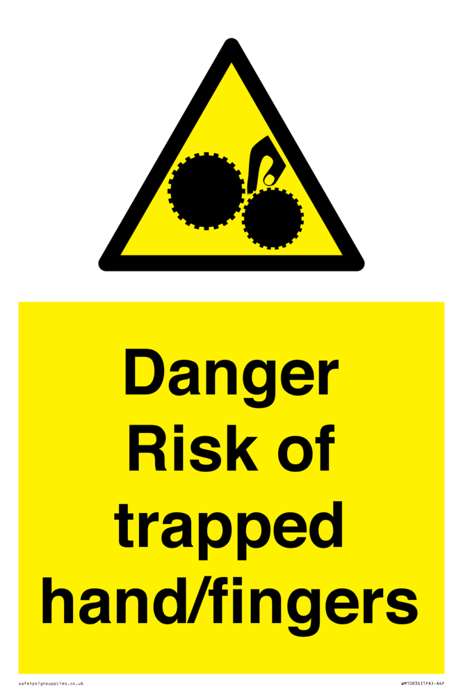 Sign Text: Danger Risk of trapped hand/fingers