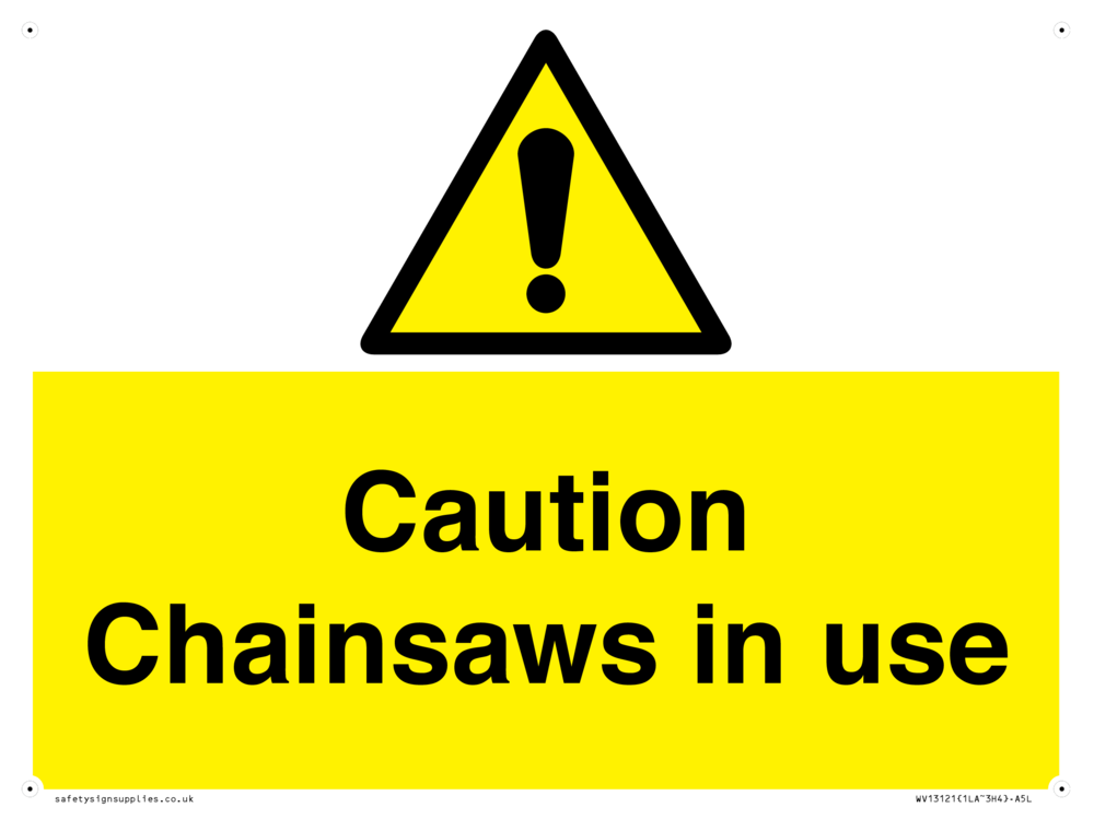 Sign Text: Caution Chainsaws in use