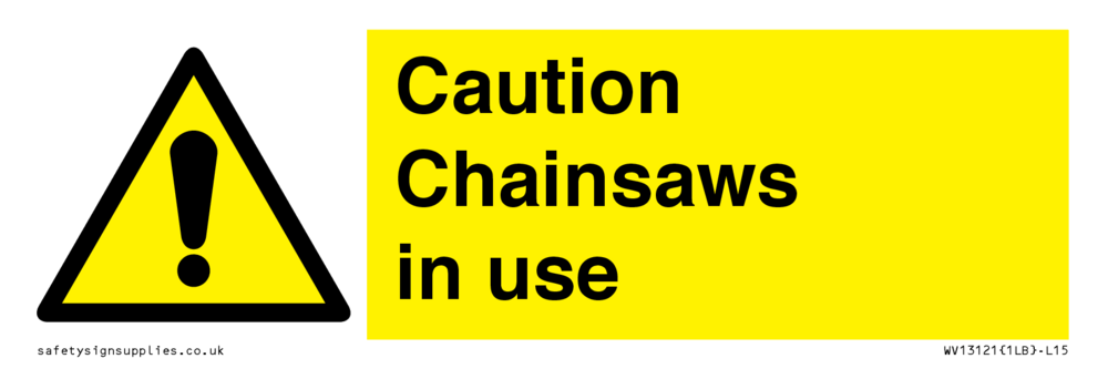 Sign Text: Caution Chainsaws in use