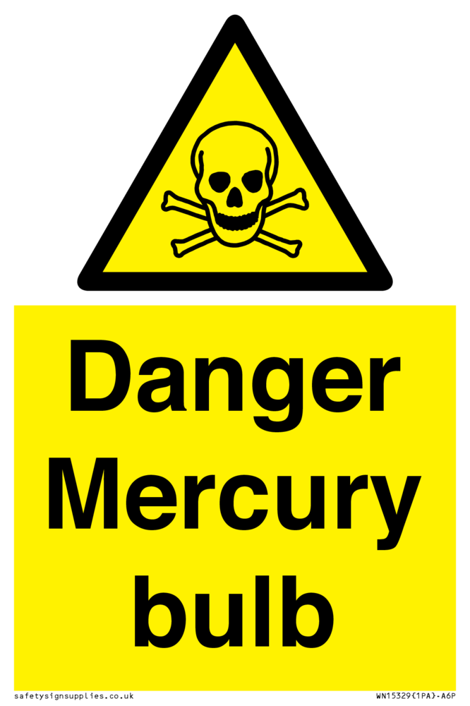 Sign Text: Danger Mercury bulb