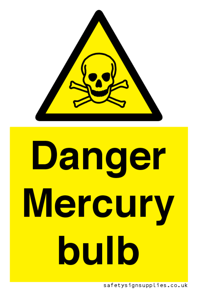 Sign Text: Danger Mercury bulb