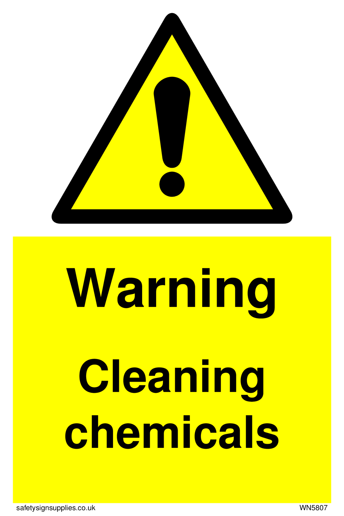 Chemical / Substance signs are used to indicate actions or health risks due to chemicals. Cleaning signs give warnings instructions during or relating to cleaning. This sign is small.
