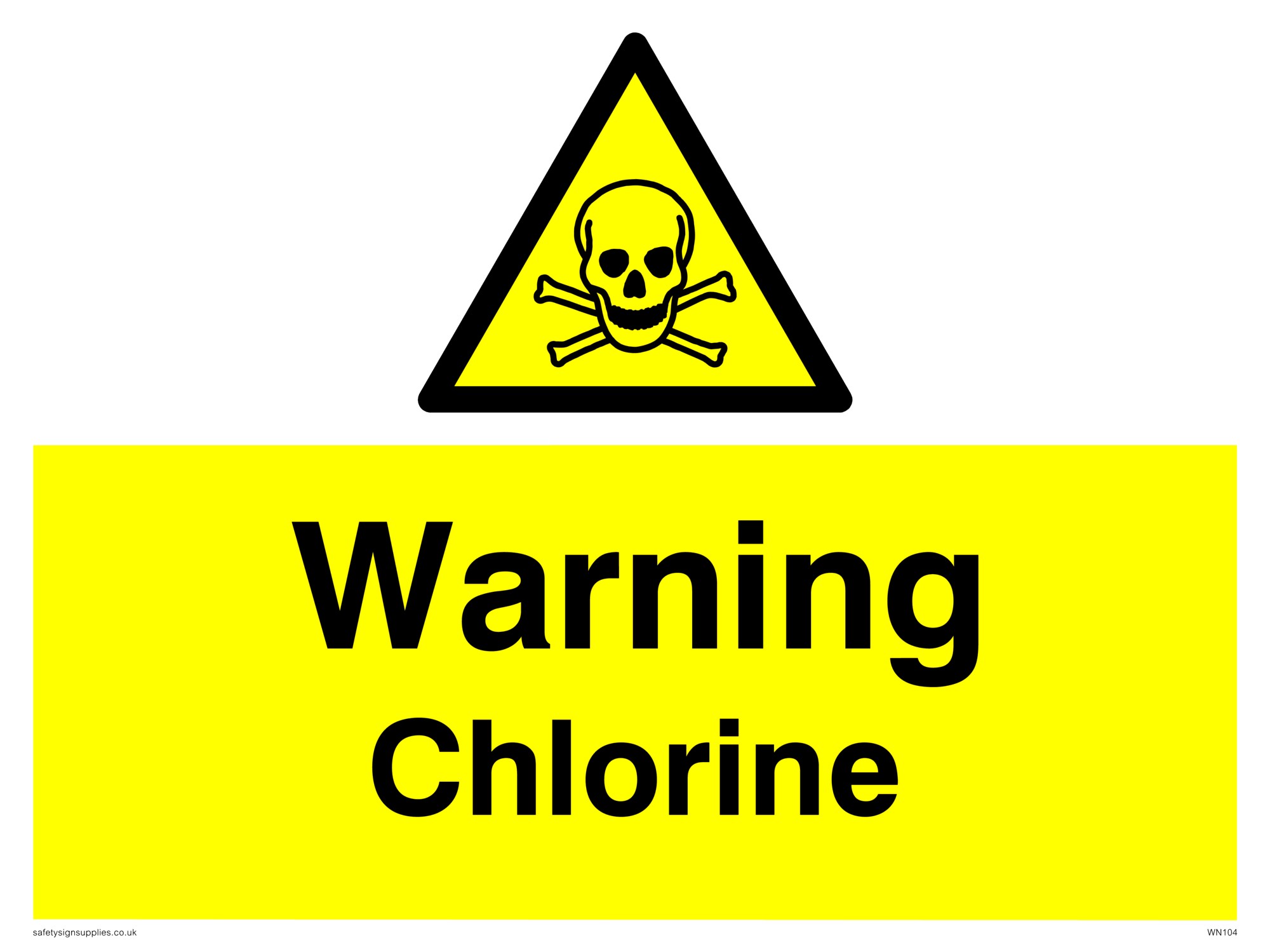 This sign contains an international standard toxic / poison symbol. Skull and cross bones in black on yellow warning triangle with black border. Comes with a self adhesive backing.