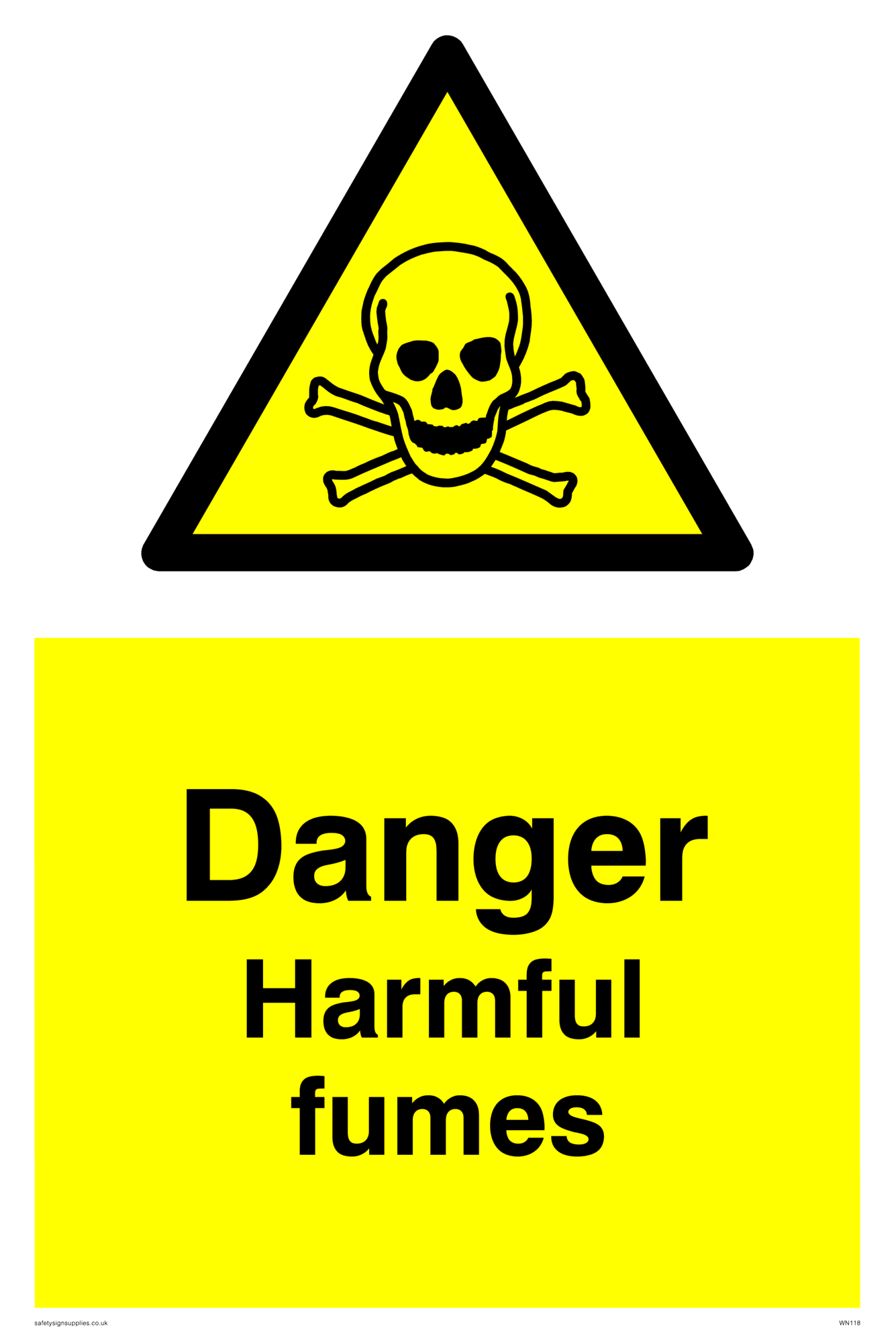 This sign contains an international standard toxic / poison symbol. Skull and cross bones in black on yellow warning triangle with black border. Comes with a self adhesive backing.