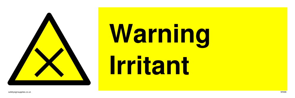This sign contains an international standard irritant / harmful warning symbol. Diagonal black cross in yellow warning triangle with black border.