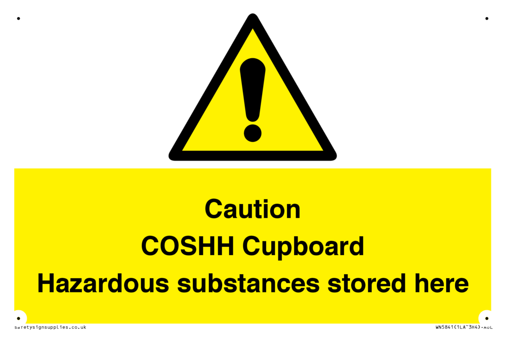 Sign Text: Caution COSHH Cupboard Hazardous substances stored here