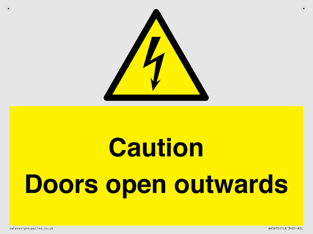 Sign Text: Caution Doors open outwards