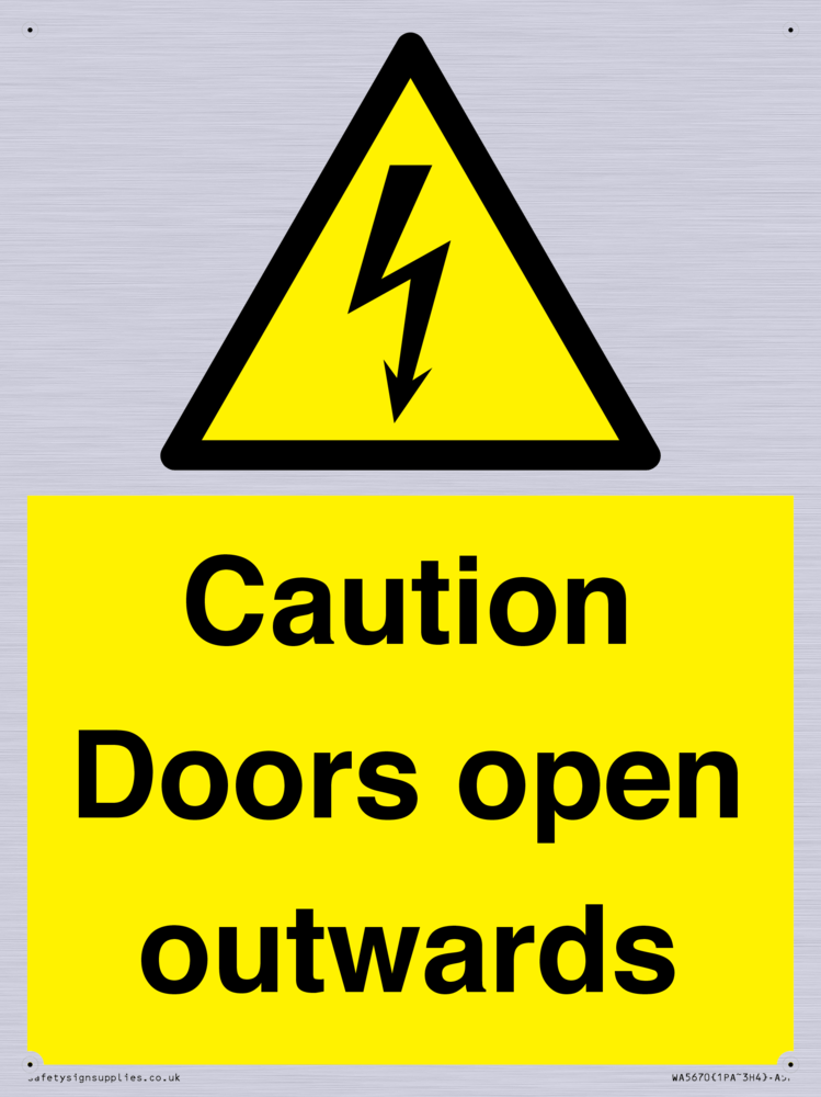 Sign Text: Caution Doors open outwards