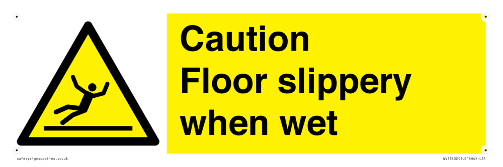 Sign Text: Caution Floor slippery when wet