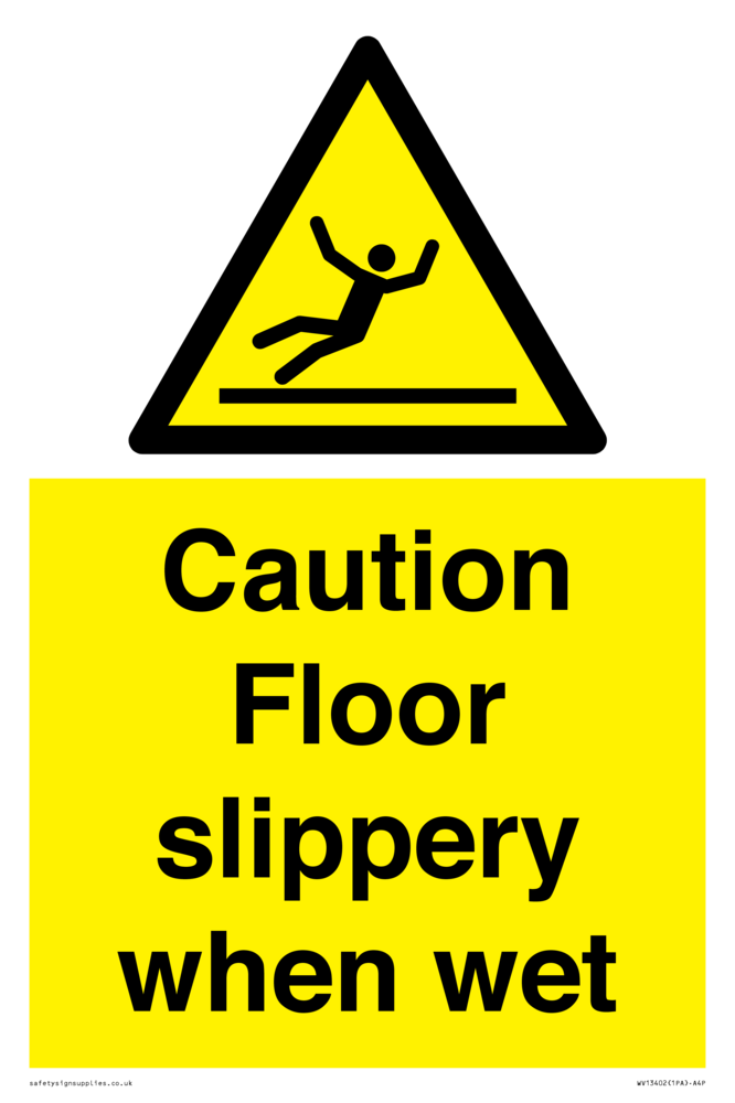 Sign Text: Caution Floor slippery when wet